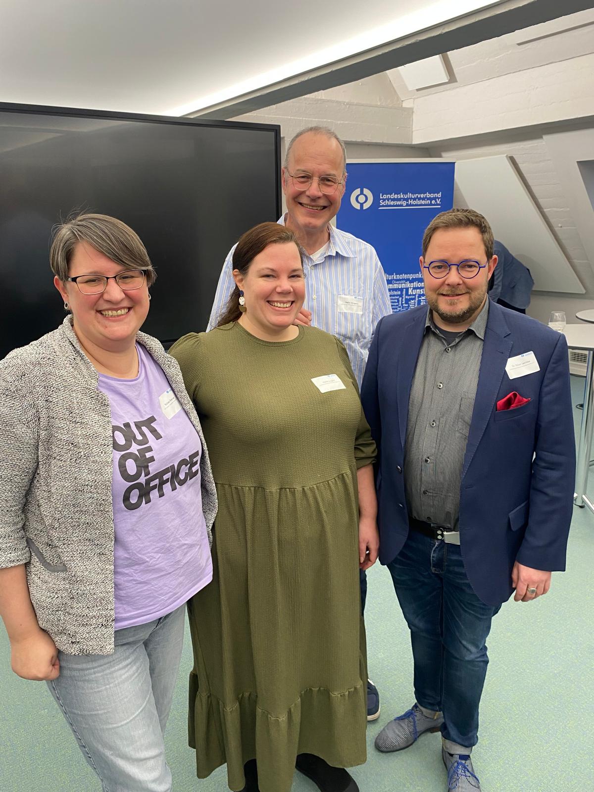 v.l.n.r.: Rabea Breiner (Stabsbereich Kultur Kreis Stormarn), Merle Lungfiel (Geschäftsführerin Landeskulturverband), Stefan Büngens (Stiftung Herzogtum Lauenburg) und Dr. Kilian Lembke (Vorsitzender Landeskulturverband) beim diesjährigen Kulturkongress in Rendsburg. ©Stabsbereich Kultur Kreis Stormarn