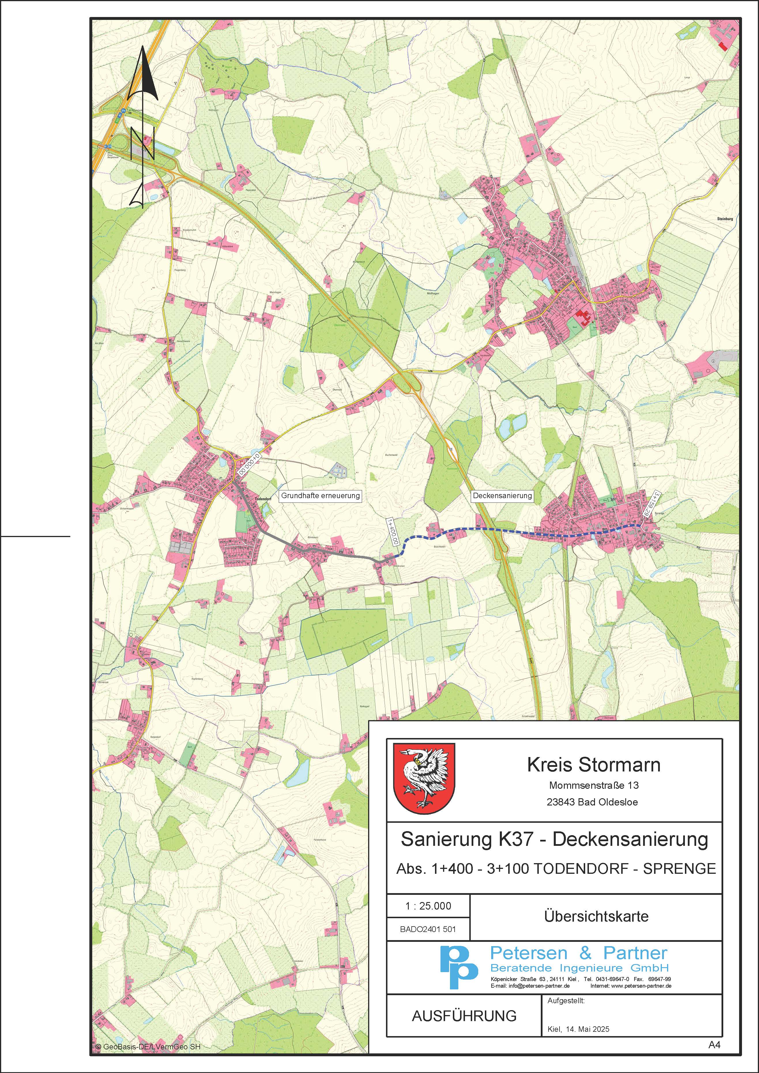 Der Kreis Stormarn teilt mit, dass die Deckensanierung an der Kreisstraße 37 in Steinburg, OT Sprenge, am 12.12.2025 erfolgreich abgeschlossen wurde und die Straße für den Verkehr wieder freigegeben werden konnte.