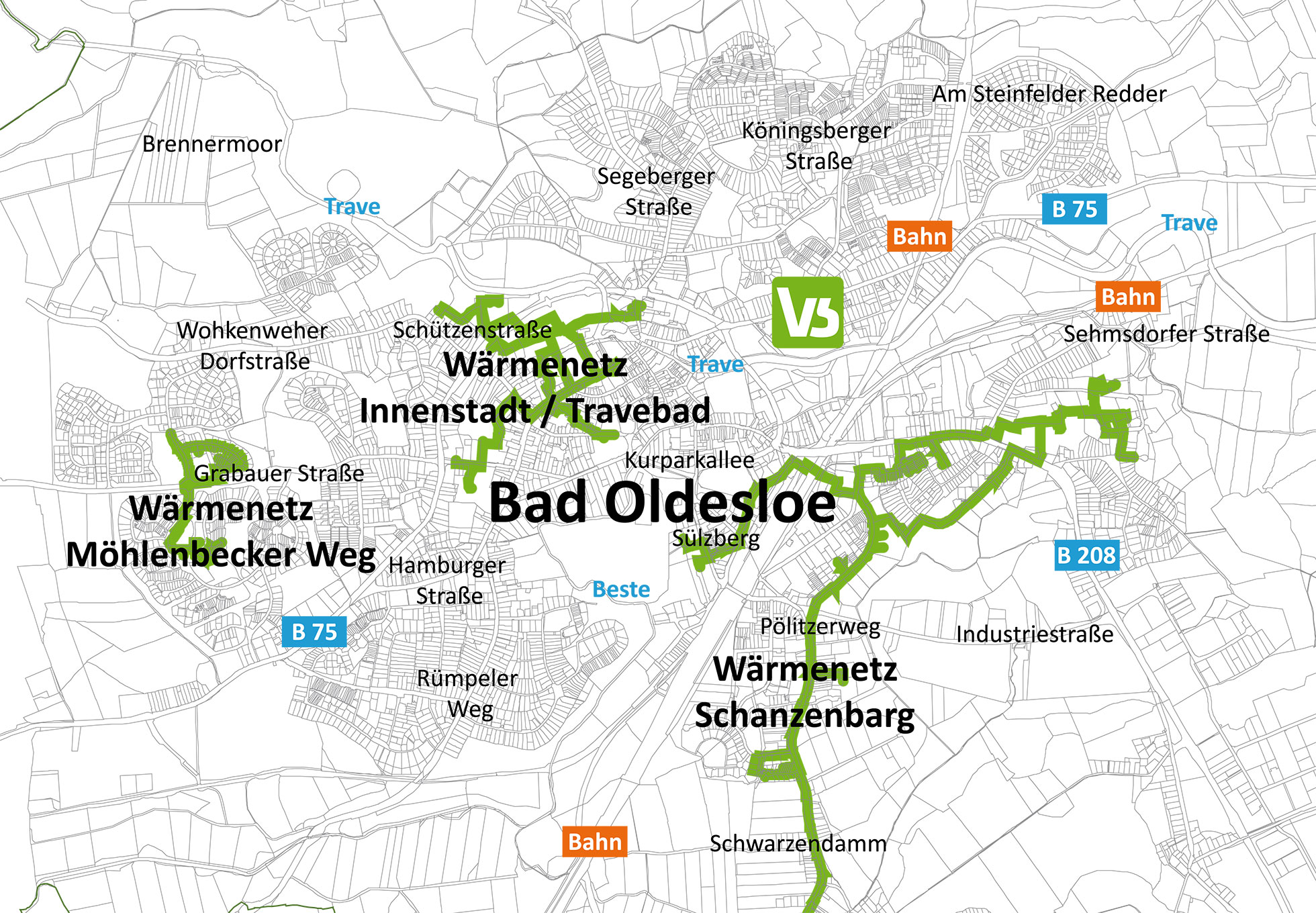 In den Verwaltungsgebäuden A-D und den Beruflichen Schulen Bad Oldesloe nutzen wir Fernwärme im Fernwärmenetz Schanzenbarg in Bad Oldesloe. Die Fernwärme wird aus dem Netz der Vereinigten Stadtwerke gespeist, die bei der nahegelegenen Biogasanlage Pölitz erzeugt wird.